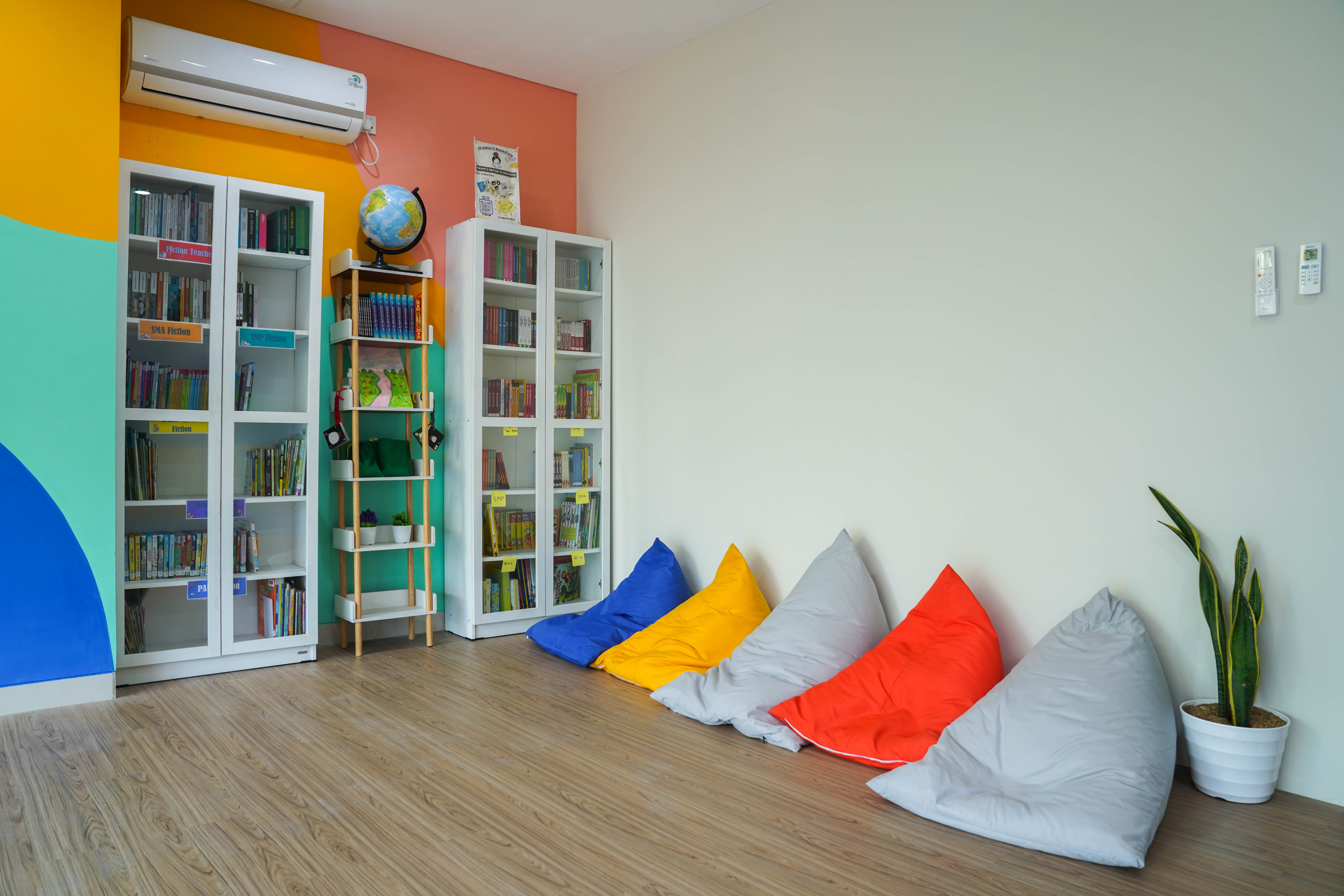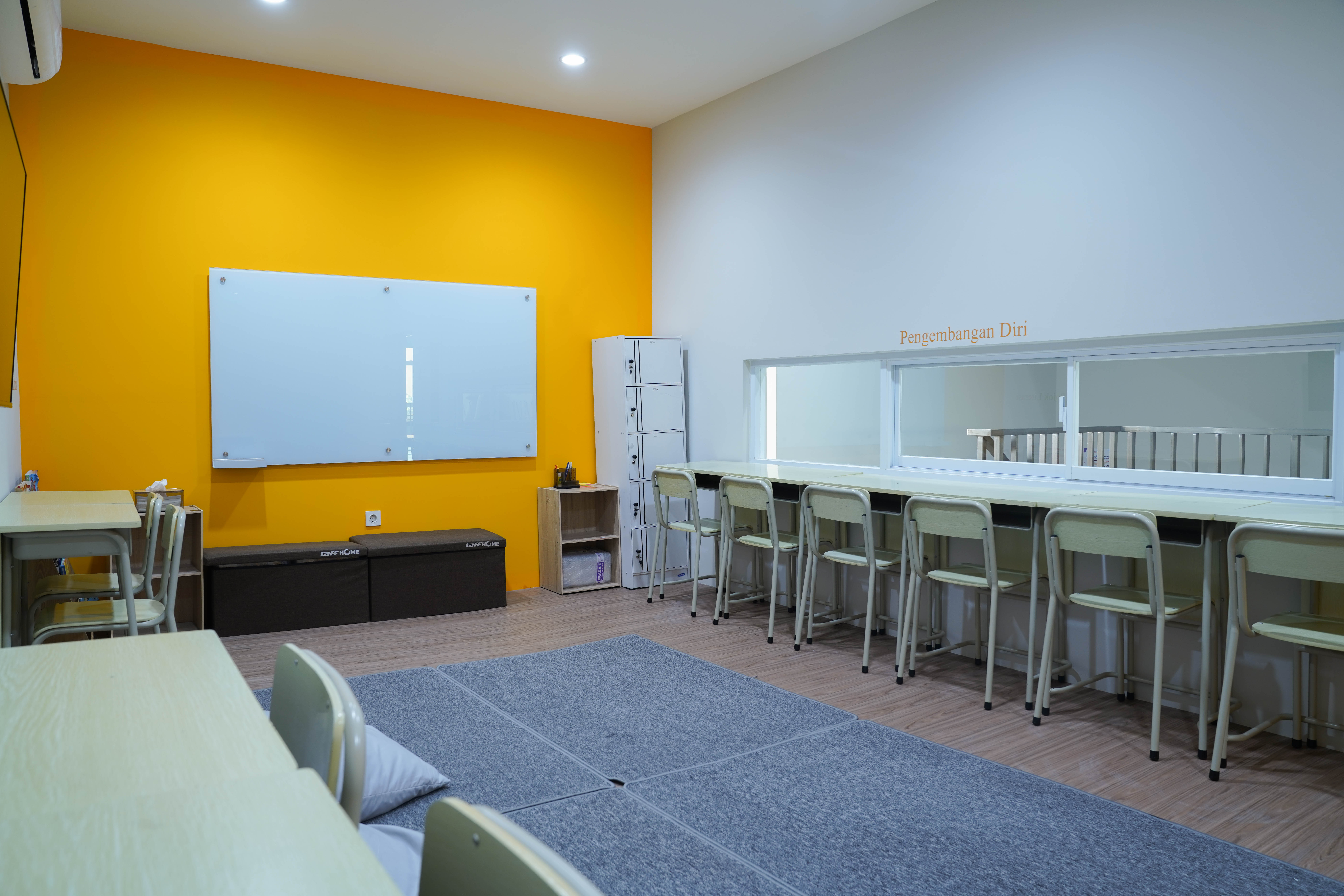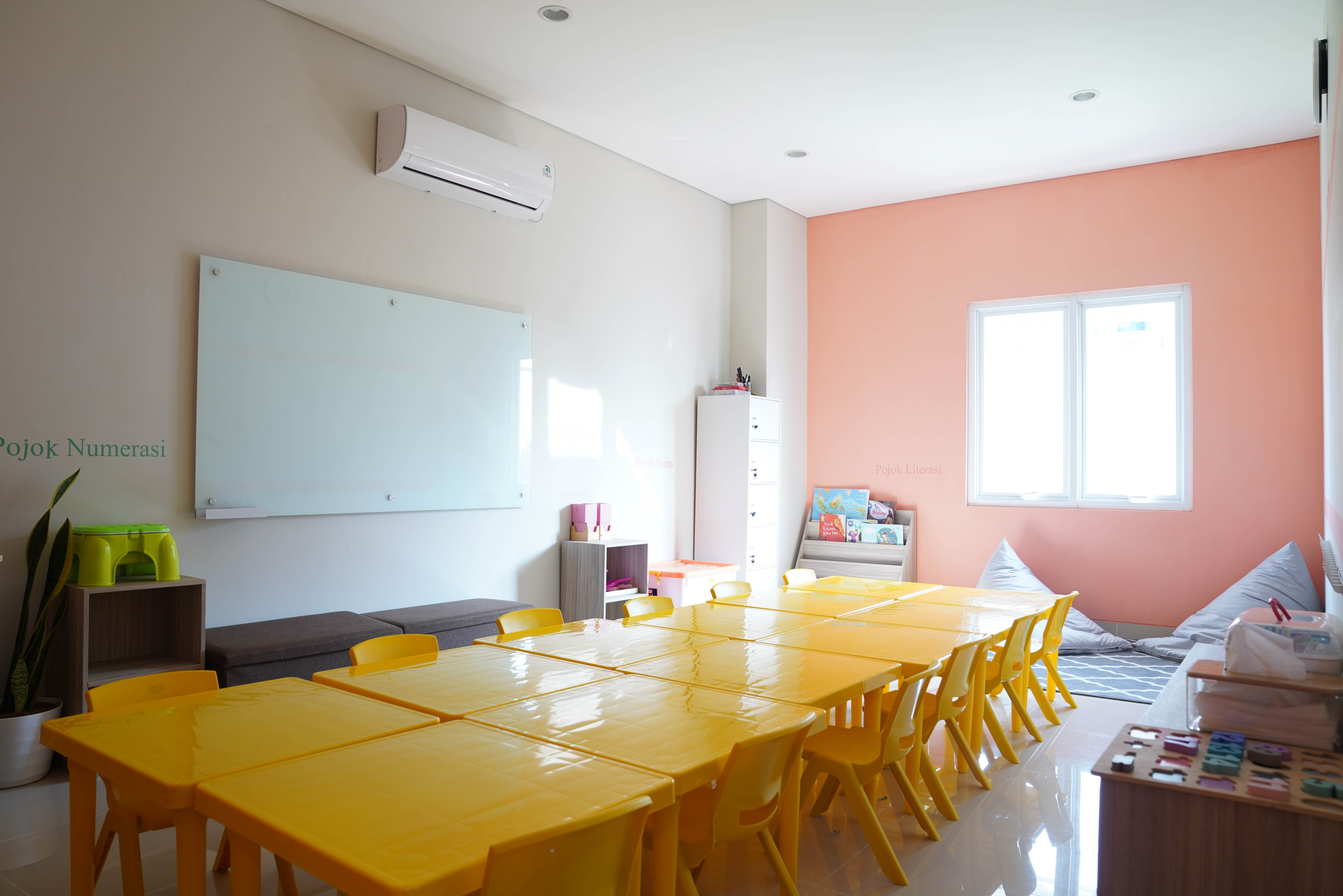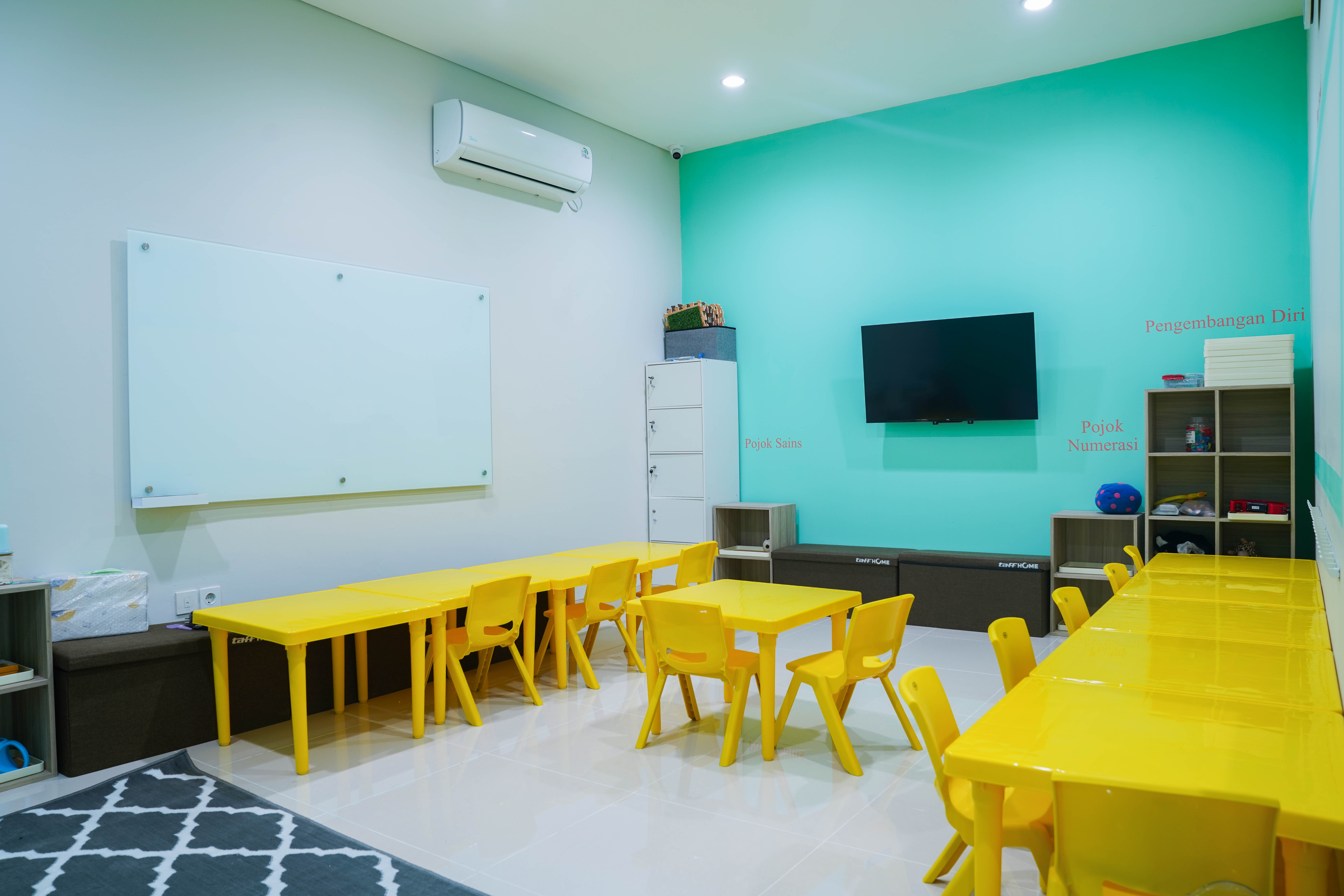 Ruang kelas dilengkapi sarana dan prasarana belajar yang menarik untuk optimalkan pembelajaran anak bersama fasilitator profesional. Fasilitasnya berupa: